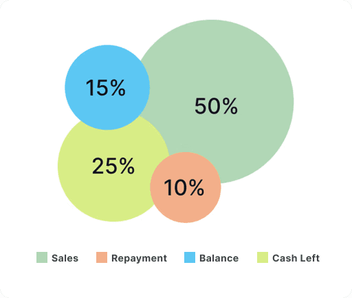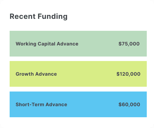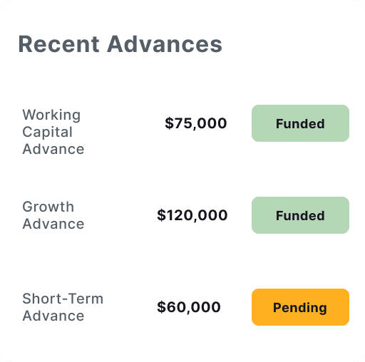 See your available capital, active advances, and repayments update automatically as your revenue changes.